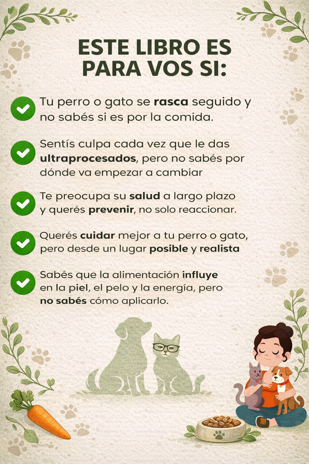 Con Nutri Pet Casero tenés una garantía de satisfacción de 7 días. Si dentro de los primeros 7 días sentís que el recetario no es para vos, no se adapta a tu estilo de vida, o simplemente no cumple tus expectativas, podés pedir la devolución del 100% de tu dinero.💚 Sin preguntas incómodas. Sin vueltas. Sin explicaciones. Creemos de verdad que alimentarlos bien también es cuidarlos, y por eso asumimos el riesgo para que vos compres con tranquilidad.